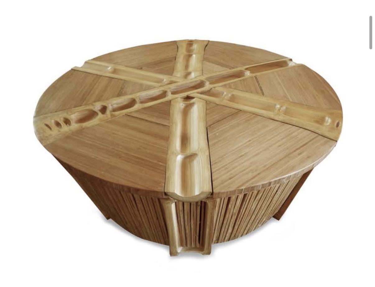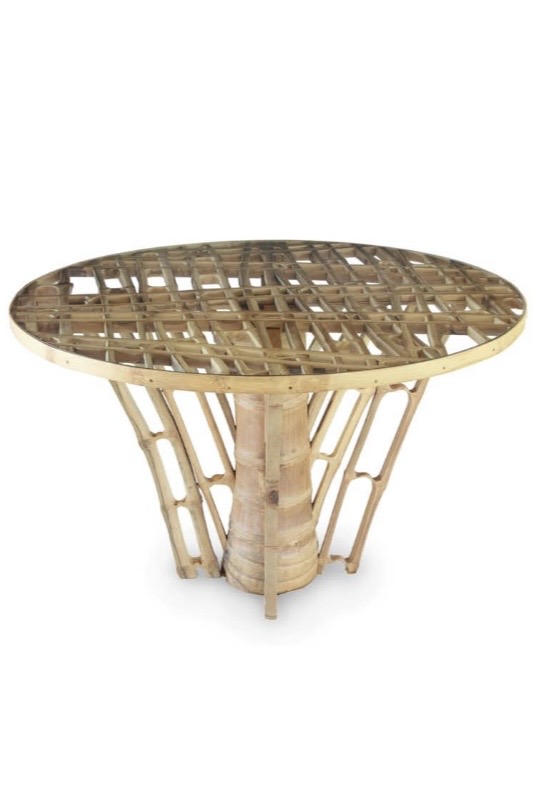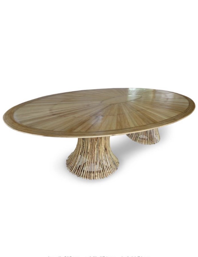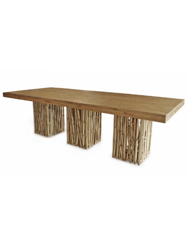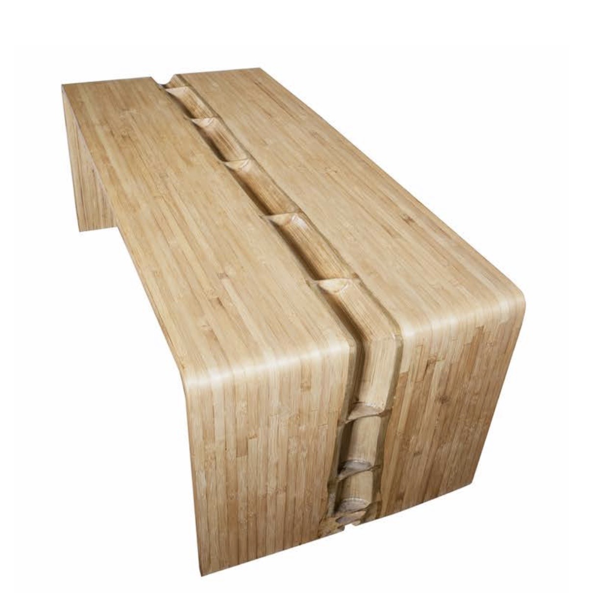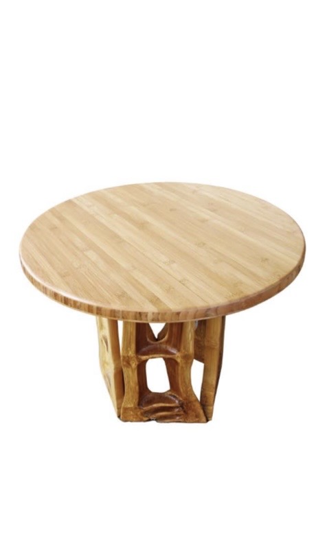 Unterschiedlich verarbeiteter Bambus als stabiler Esstisch.