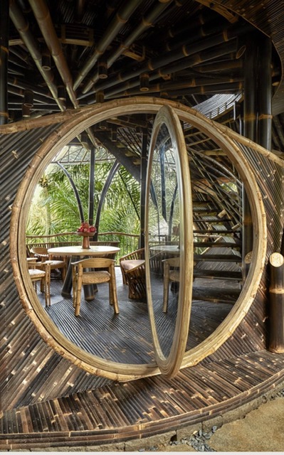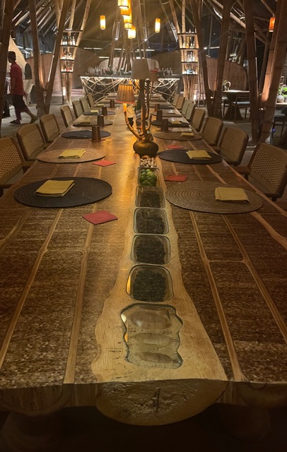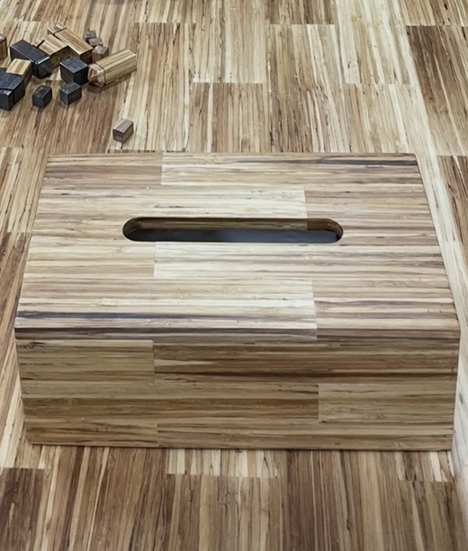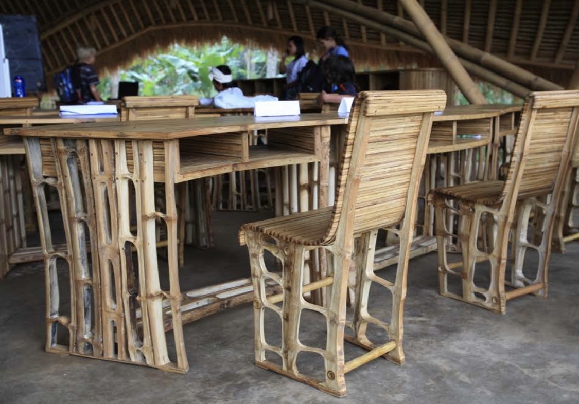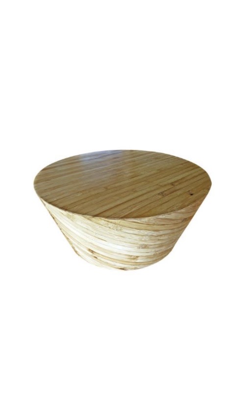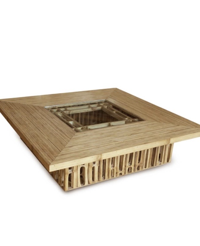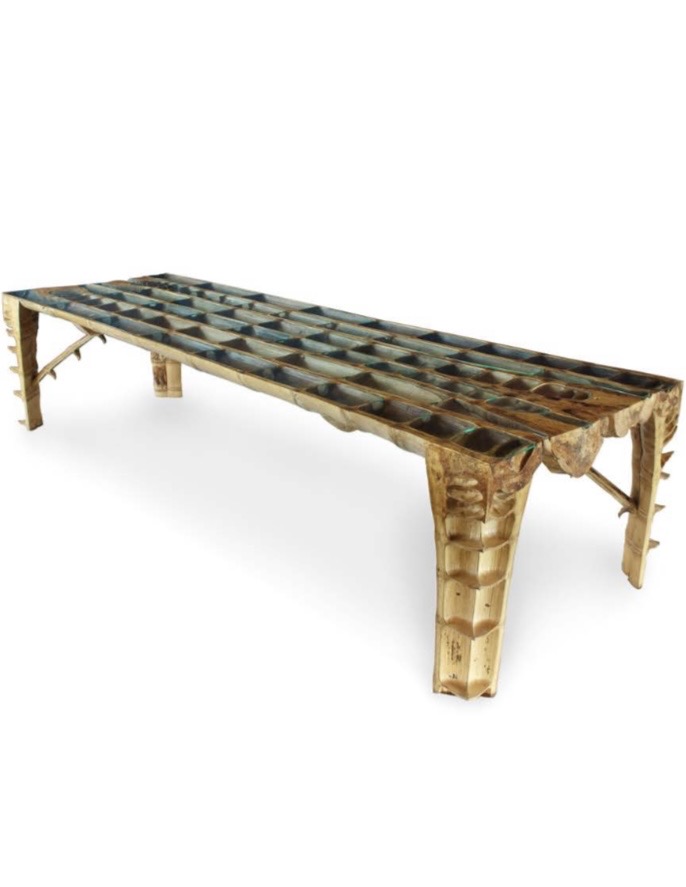 Unterschiedlich verarbeiteter Bambus als stabiler Esstisch.