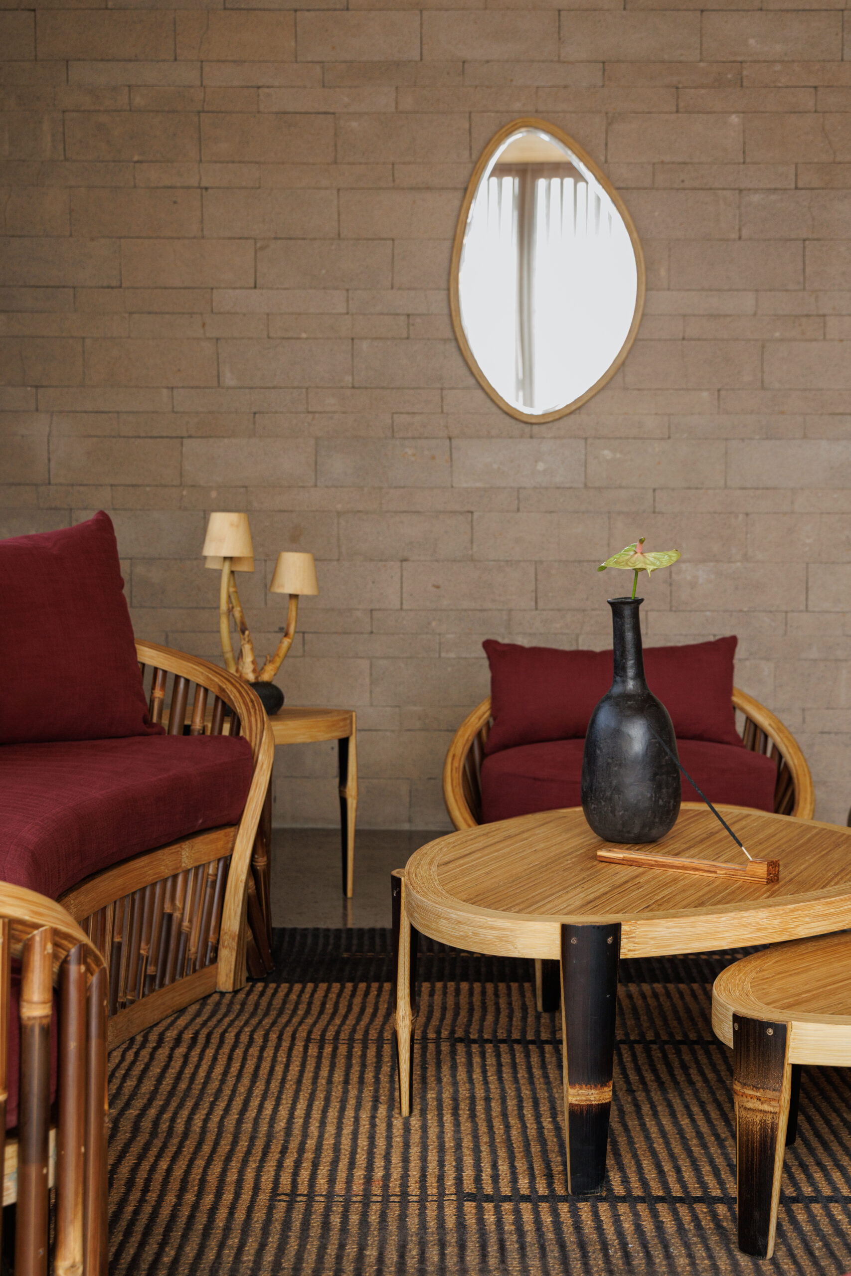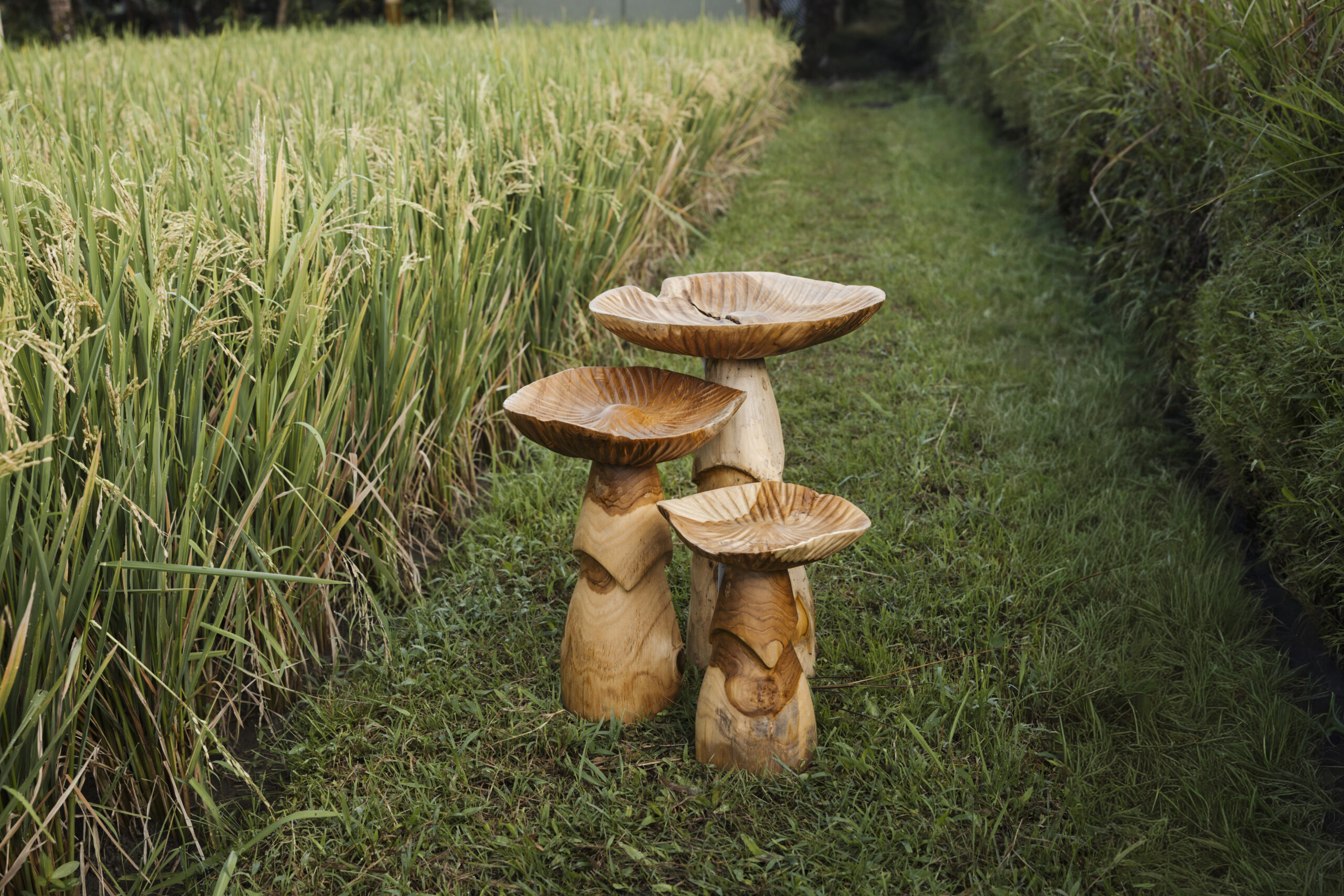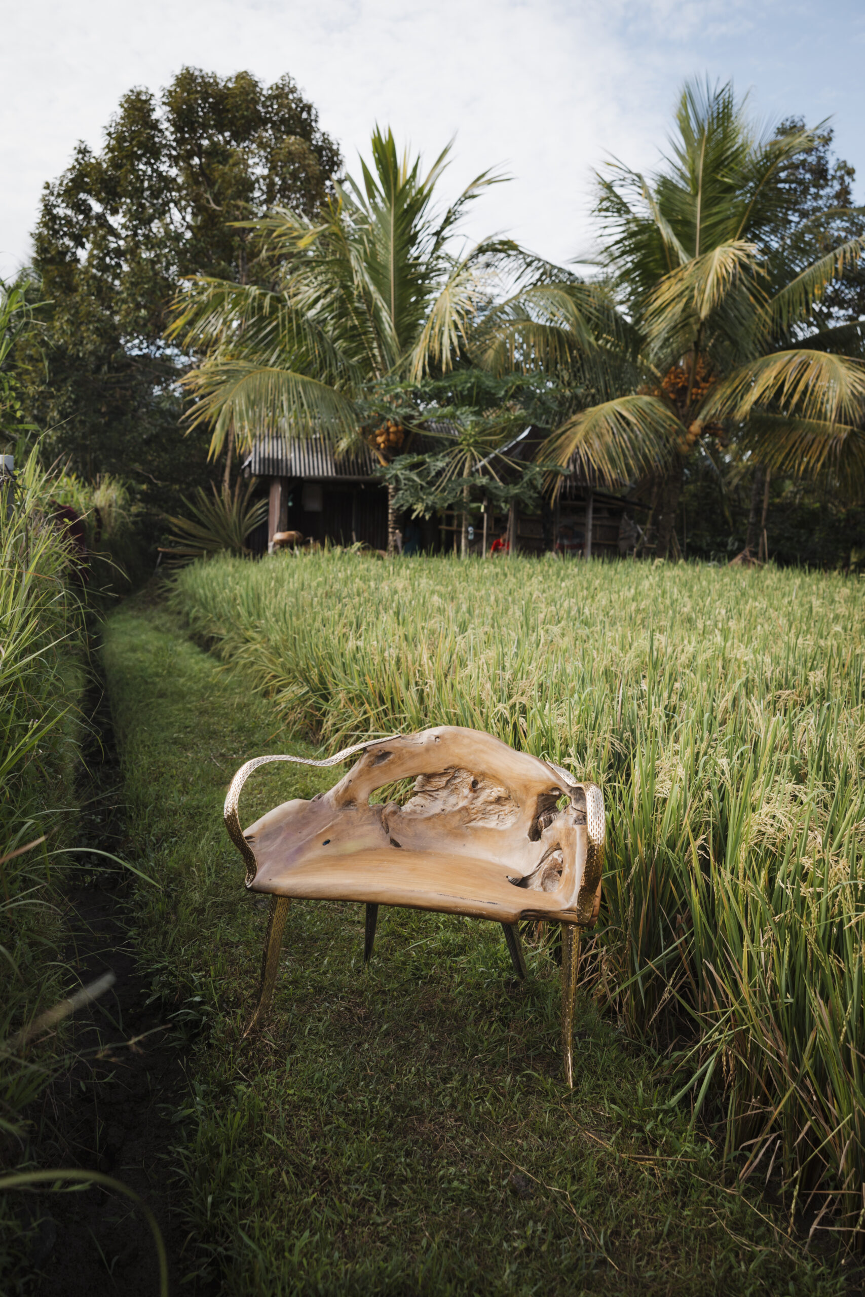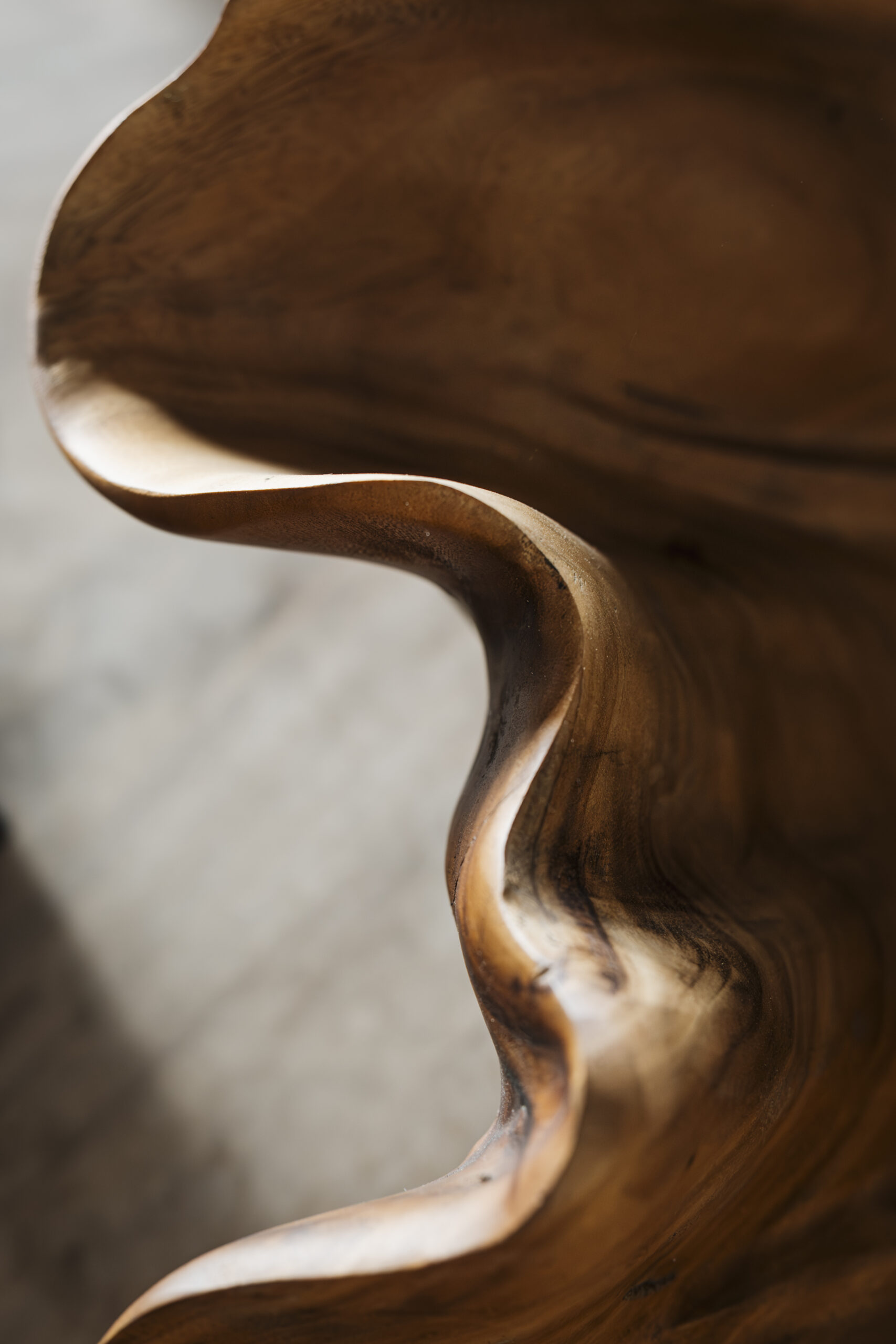 Jedes Stück ist ein Unikat. Gewachsen aus Bambus, Teak oder Suar, geformt ohne Schablone, getragen von organischen Linien. Risse, Kanten und Maserungen bleiben sichtbar. Metall in Schwarz, Gold oder Silber ergänzt zurückhaltend und setzt das edle Holz in den Mittelpunkt.