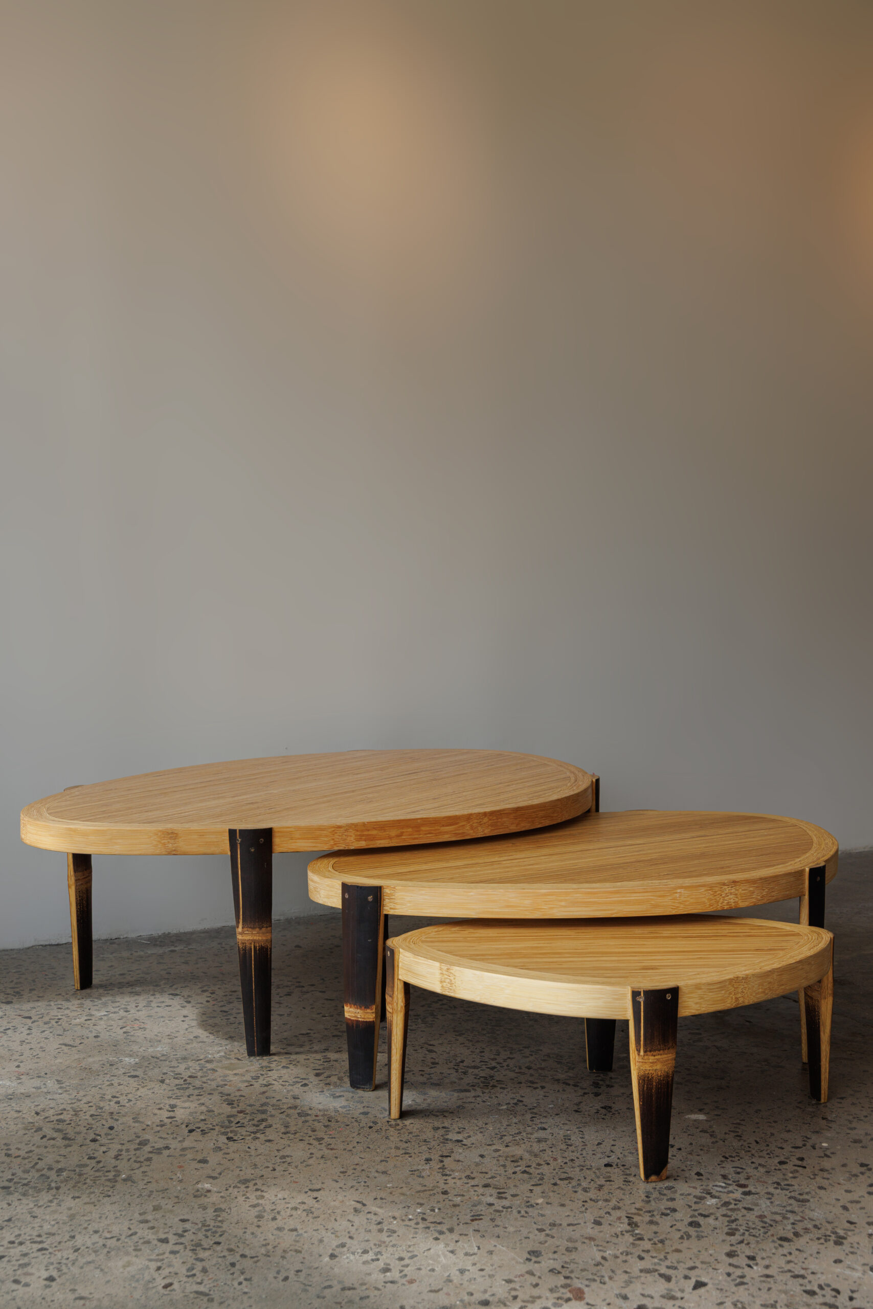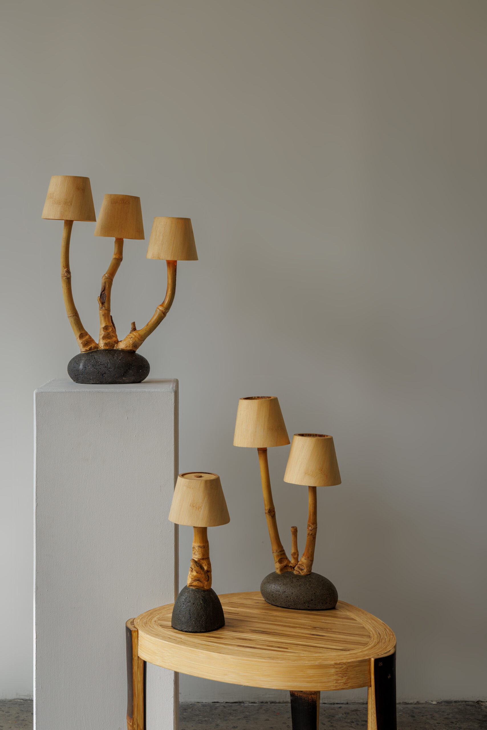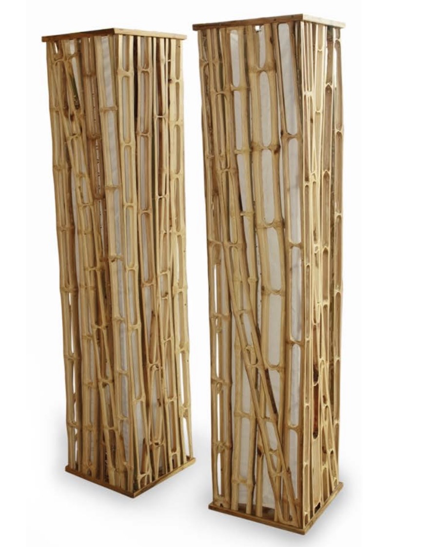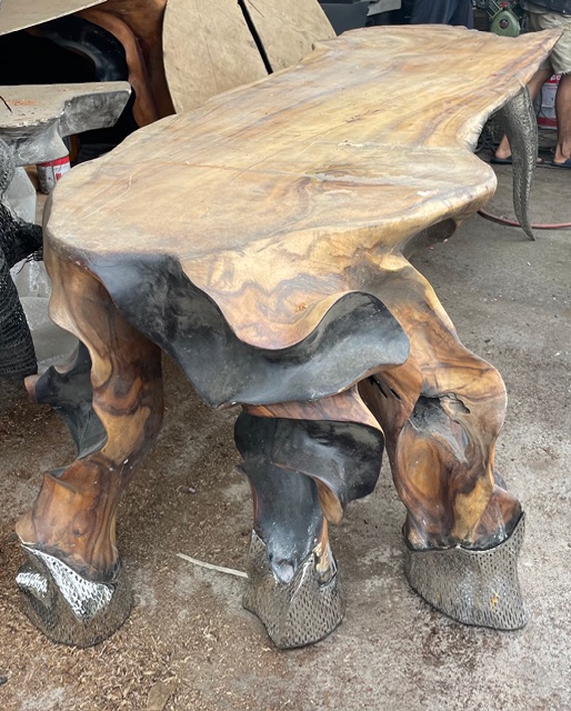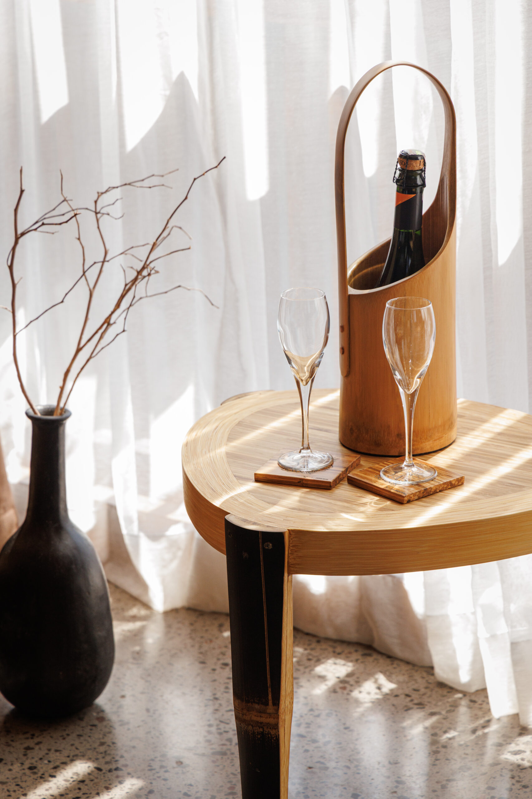 Jedes Stück ist ein Unikat. Gewachsen aus Bambus, Teak oder Suar, geformt ohne Schablone, getragen von organischen Linien. Risse, Kanten und Maserungen bleiben sichtbar. Metall in Schwarz, Gold oder Silber ergänzt zurückhaltend und setzt das edle Holz in den Mittelpunkt.