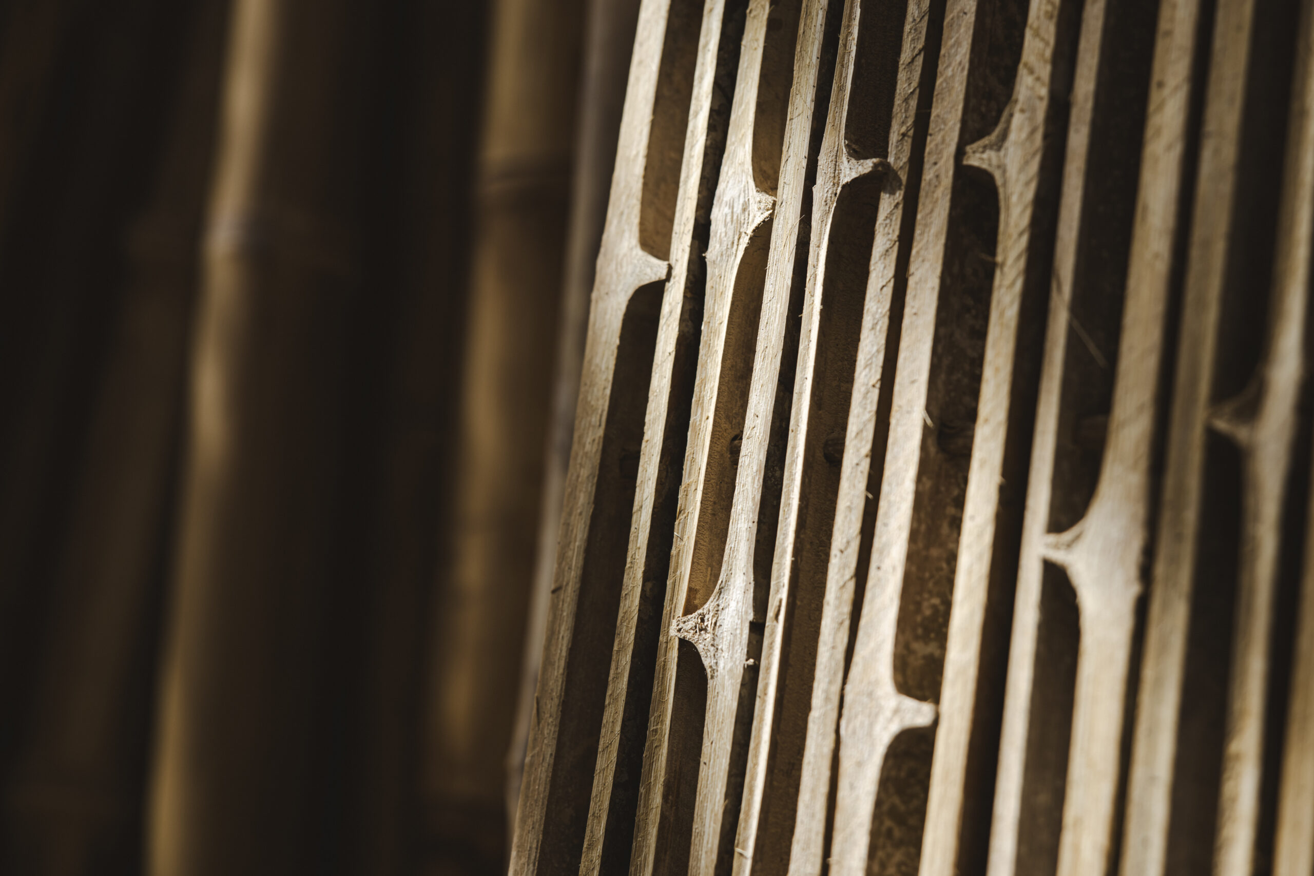 Handwerkliches Geschick umschlingt einen Bambusstamm.