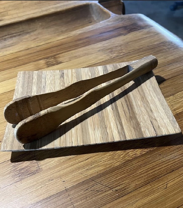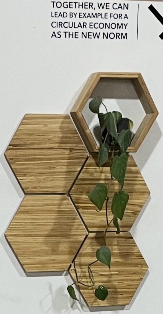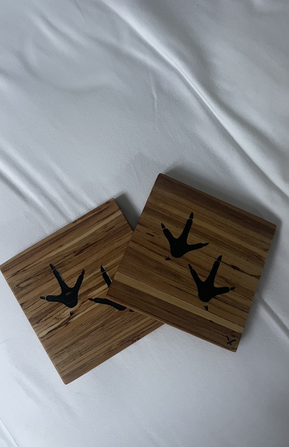 • Glasuntersetzer aus recycelten, gepressten Essstäbchen mit AYAM Logo.